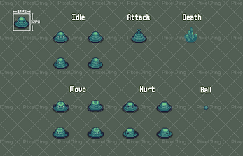 - Ball animation : 1 frame(Ball Shape)+7 frames(Ball Blast).
